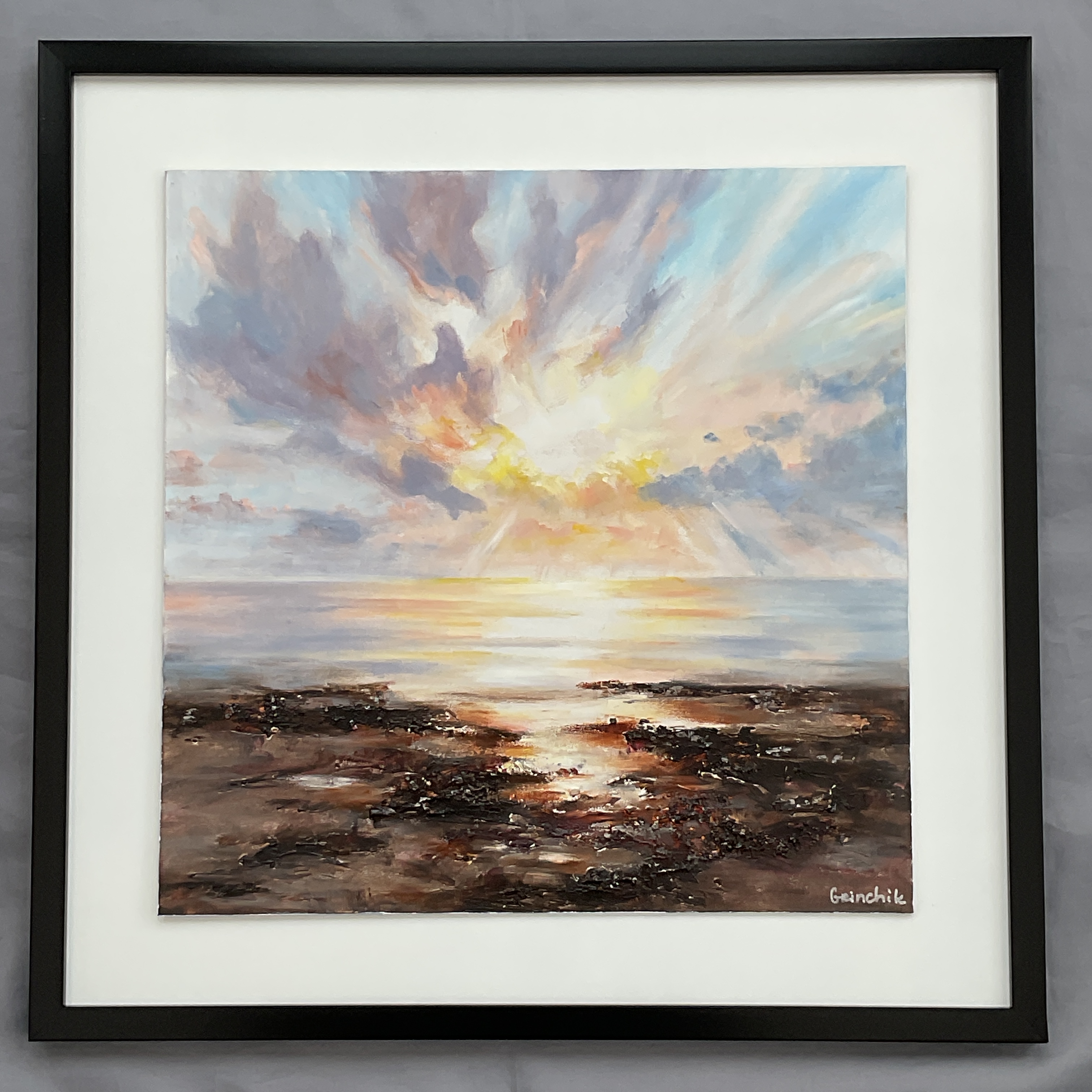 “Melting into Sea”, Oil, cold wax, 53cm x53cm, £95