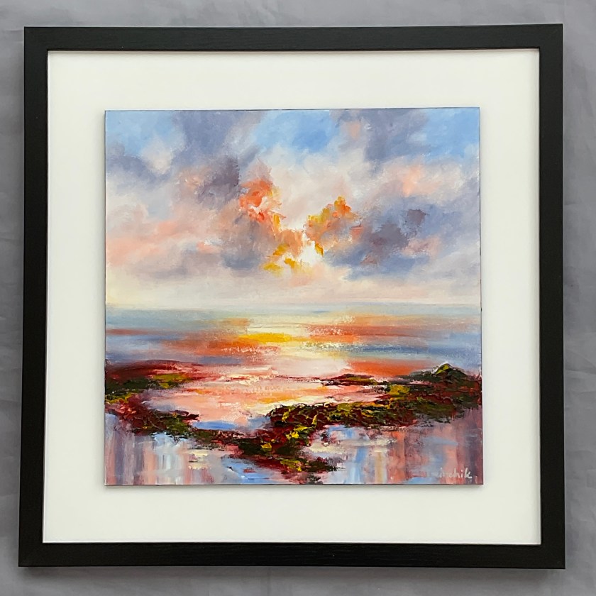 “Happy! 3” Oil, cold wax, 43cm x43cm, £70